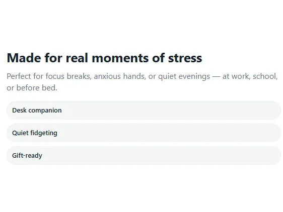 Made with Food Grade Silicon, it offers an experience that's perfect for relaxation, fidgeting,or simply admiring on your desk. It’s your soothing companion in the palm of your hand.